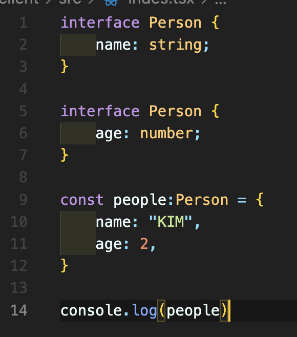 interface 는 Person 이라는 같은 식별자를 사용해도 선언 병합이 가능하지만