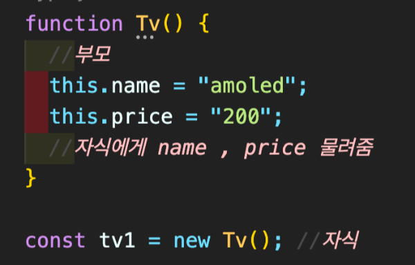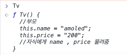 객체를 생성하는 Tv템플릿에 tv1이라는 인스턴스를 생성해서 데이터가 들어간 객체를 만들 수 있습니다.