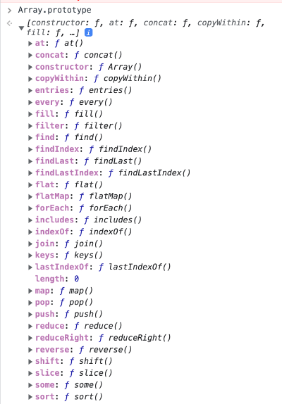 .prototype 을 이용해 배열의 프로토타입 객체를 살펴보겠습니다.