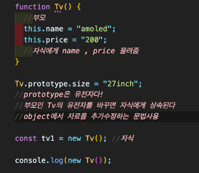 부모객체(Tv)의 prototype(유전자)에 size 속성을 추가하고,